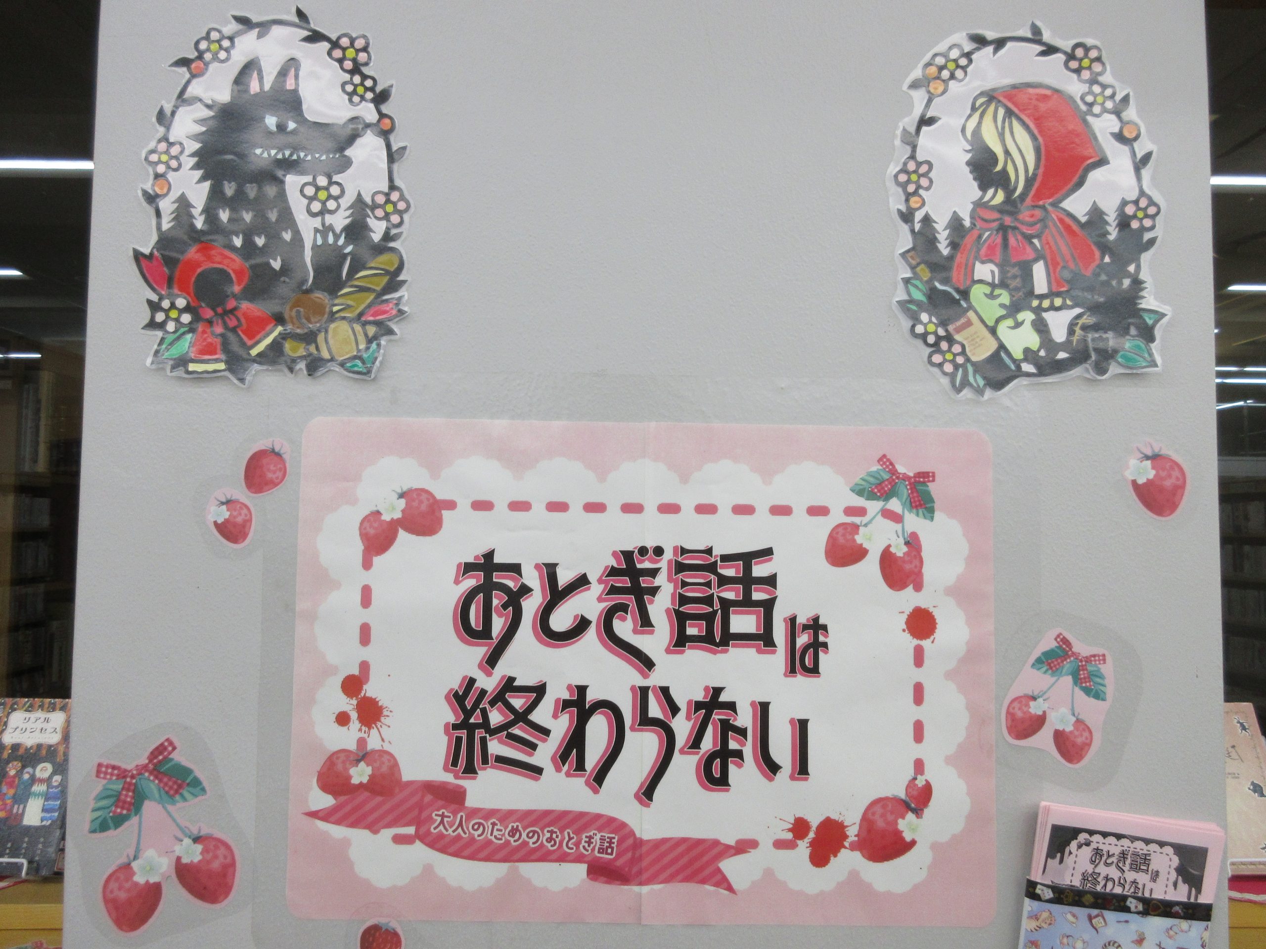 こちらでは「おとぎ話は終わらない」をテーマに、おとぎ話や昔話を題材にした大人向けの小説や絵本を展示しています。