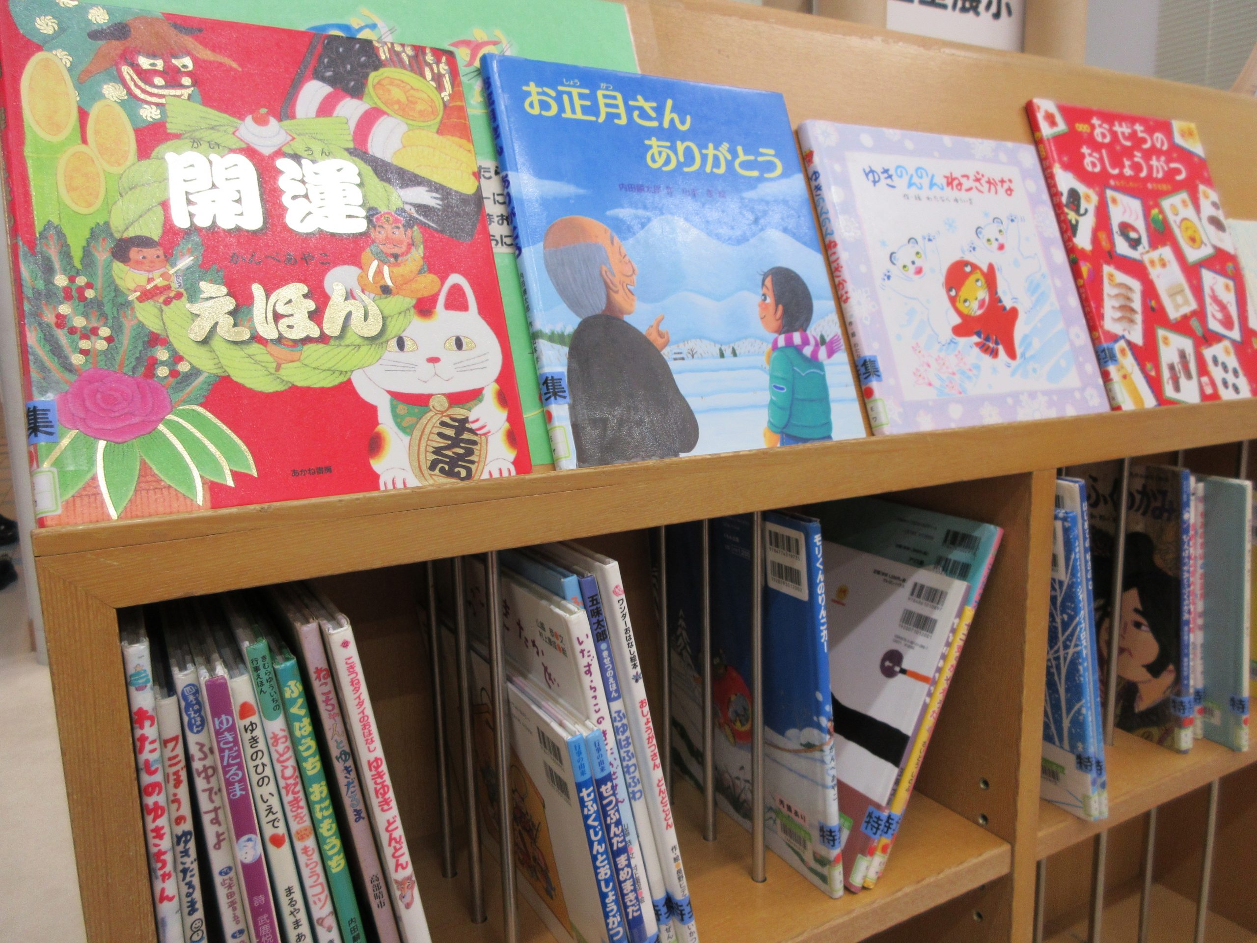 こちらでは「冬」をテーマに、雪や冬の行事に関する絵本を展示しています。